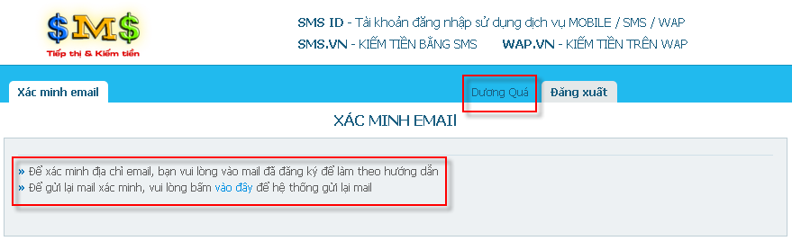 Click vào đường link xác thực của SMS.vn trong mail gửi đến (nếu không thấy mail gửi đến vui lòng kiểm tra spambox hoặc yêu cầu gửi lại)